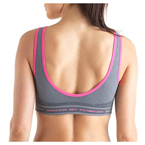 -. Binding : Apparel -. Brand : Lupo -. Department : womens -. Feature : Lupo Comfort Fit Sports Bra is for one who loves fashion and exercise / Made in shades of grey with a pop of pink / Scoop neck and deep back allows movement with ease / Wicking tech of Seamless Dry tech keeps moisture away combined with Sanitized antimicrobial treatment / Size by Band S:28-30 M:32 L:34-36 XL:38-40 Based on C Cup. Size down for A Cup, Up for DD. -. Model : 71433-001 -. NumberOfItems : 1 -. PackageQuantity : 1 -. ProductGroup : Apparel -. ProductTypeName : BRA -. Title : Lupo Women's Treino Fashion Comfort Support Seamless Sports Bra