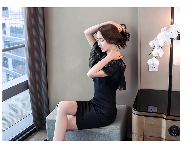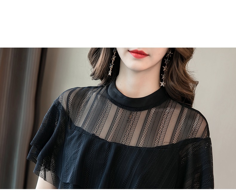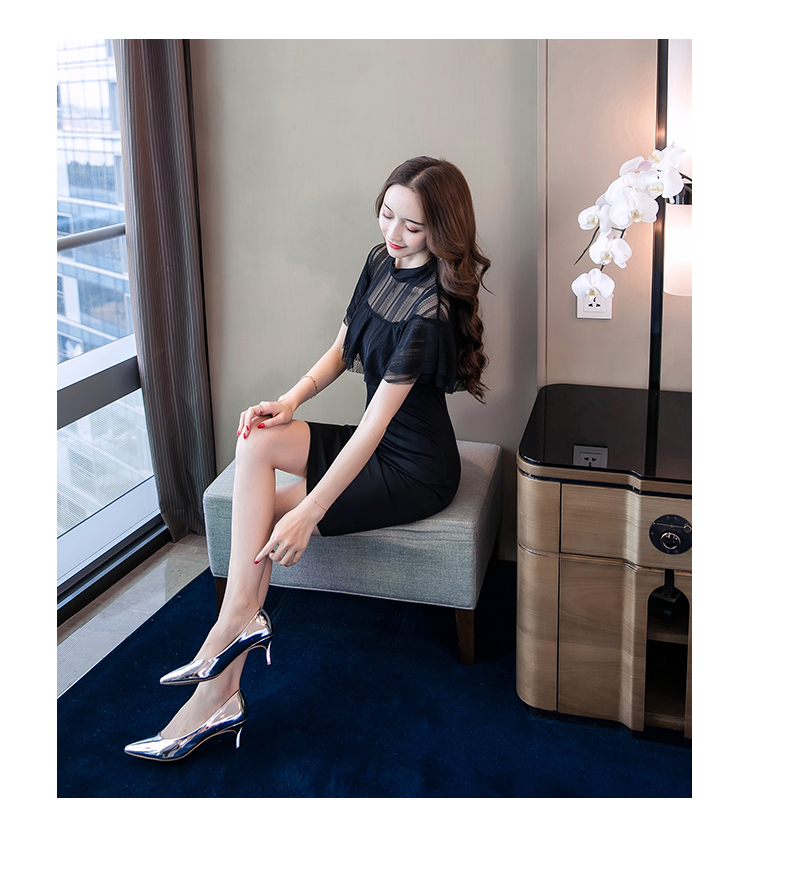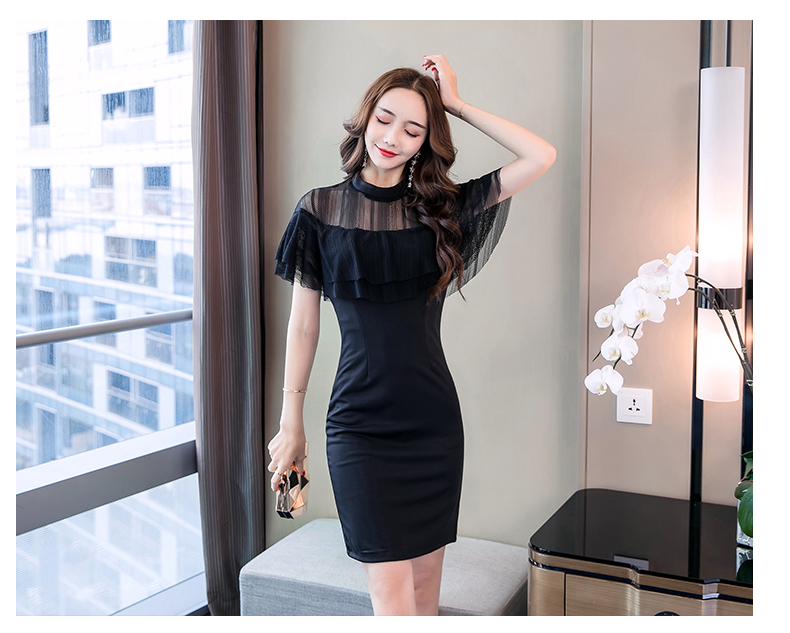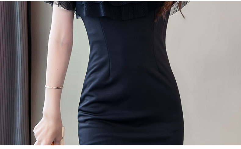レース フリル半袖 ラウンドネック タイト ワンピース