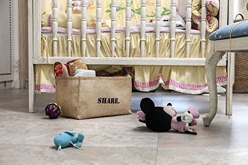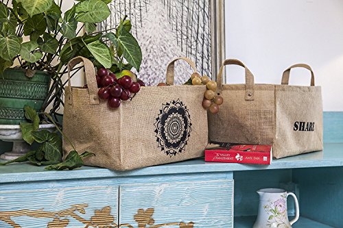 Feature : ORGANIZE YOUR LIFE: Trendy, Multipurpose Small basket perfect for storing Baby clothing, Childrens toys, Bath items for adults and kids, Kids Shoes, Towels, Kitchen appliances, Newspapers and Magazines. Ideal for use as Adults or Kids Closet Organizer, even as a Fruit basket, Picnic basket, Mail and Key basket or unique DIY Gift basket for gifting gourmet food, cookies or wine. Use in a bake sale or come up with your own ideas to use this space saver / FUNCTIONAL: The V2 models have wire framing to give them structure. Our baskets have plastic lamination on the inside so they're moisture resistant. Perfect for bathroom, kitchen or porch / DECORATIVE: Stylish Print, an inspirational word on one side and an interesting artwork on the other, makes a statement and looks great in living room, study, bedrooms, bathroom, nursery etc. Natural jute color goes with all furniture. Eco friendly Jute - great alternative to Rattan or Wicker basket, offering the same Aesthetic look for cheap. Buy Singles or the Full Set / EASY TO FIT: Handles add functionality and make it easy to pull in cube storage shelves as fabric drawers. Fits well in most shelving systems: 15.5 inches L x 10.5 inches W x 9 inches H. Lightweight jute basket makes lifting easy and works for childrens bedrooms, study desks or storage organization units. This space saving bag will keep your rooms free of clutter