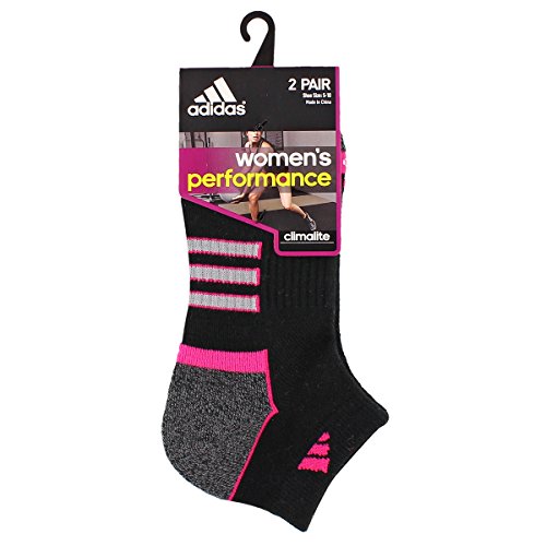 adidas Women's Climalite II Low Cut Socks (2 Pack), One Size, Black/Shock Pink/Light Onix/Black-Onix Marl