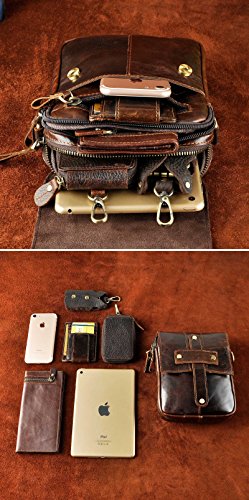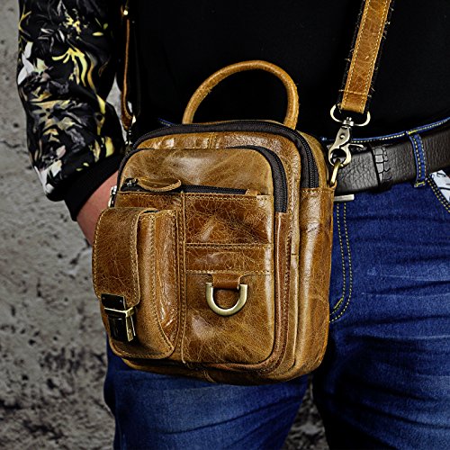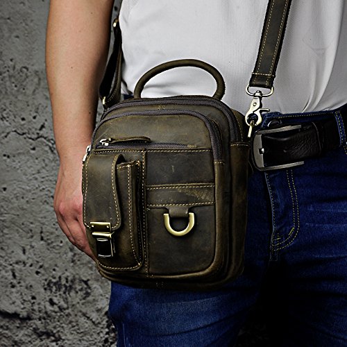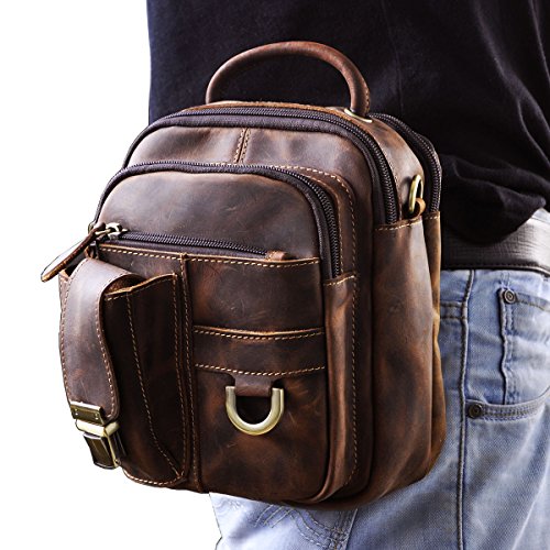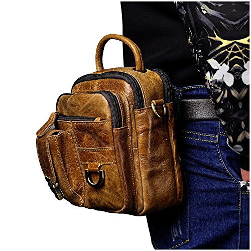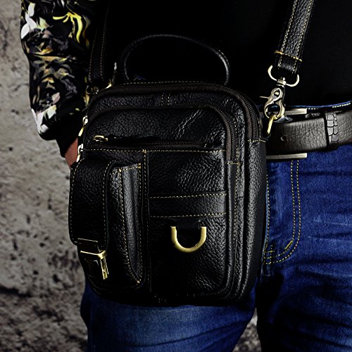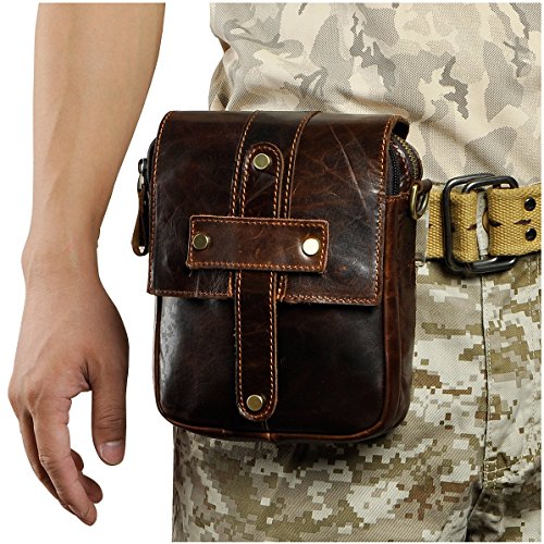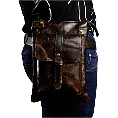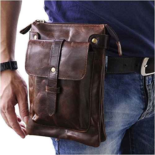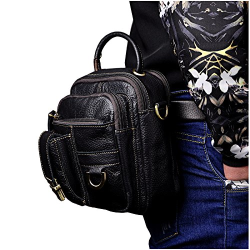 | Le'aokuu Mens Genuine Leather Sling Messenger Shoulder Fanny Waist Pack Hip Bum Bag Tote |