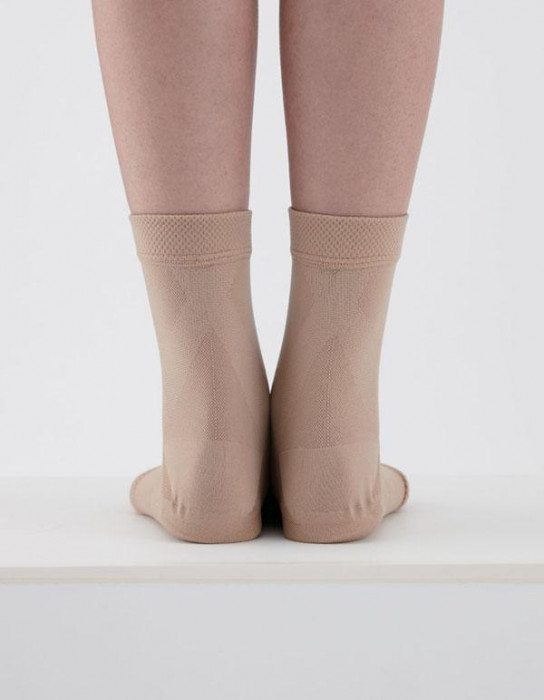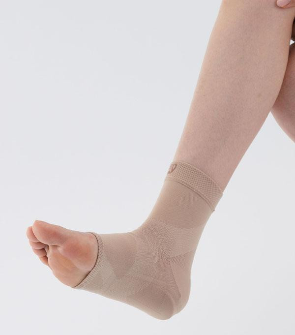 | スパイラルテーピング機能で足首の安定度を高めスムーズな歩行をサポートします。伸縮性に優れた糸を使用し、ソフトでありながらフィット性に富んだはき心地を実現しました。メッシュ編みで通気性がよく、ムレを防ぎます。 |