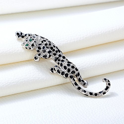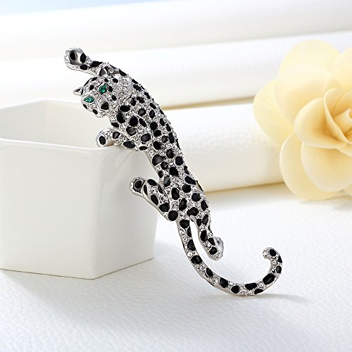 Leopard brooch, to be unique. Designed as a climbing leopard, this animal is bound to be special decoration for women. The cool black enamel and eye-catching crystals were combined together to create this unique sexy jewelry, making it wonderful gift for women.