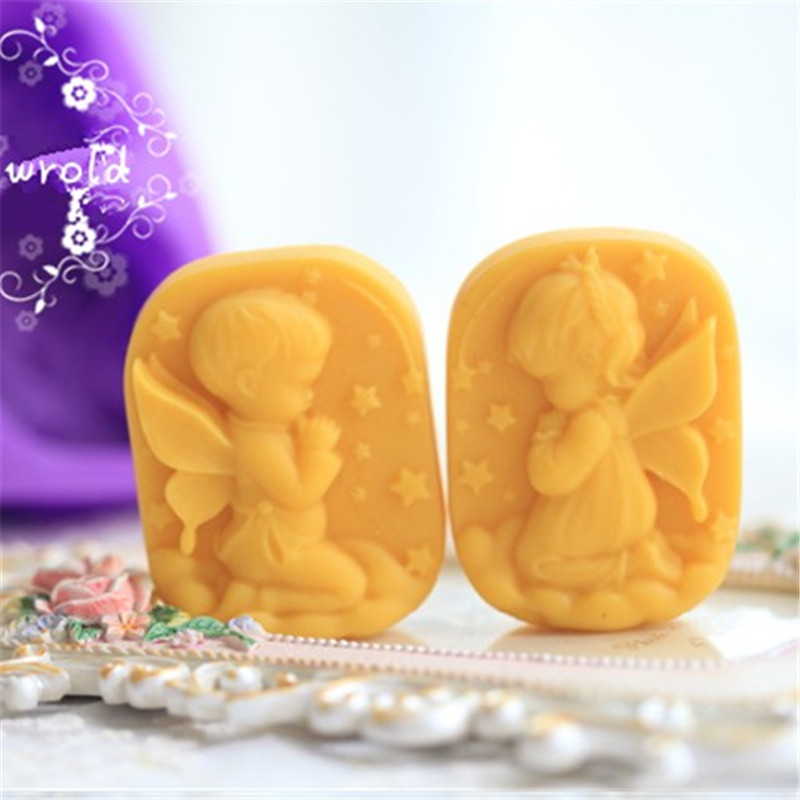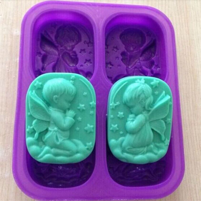 4 Block Cute Angel Baby Shape Silicone Soap Mould Handmade Candle Pan Chocolate Pudding Jelly Candy Baking Cake Mold