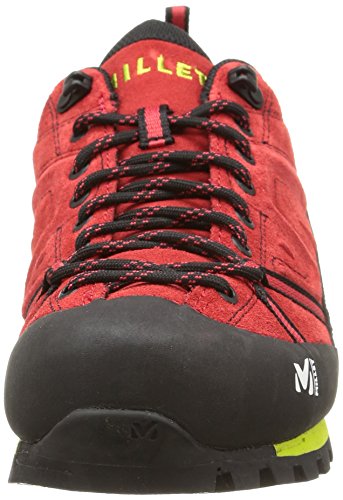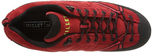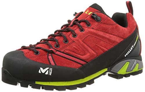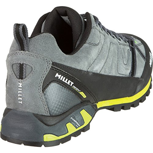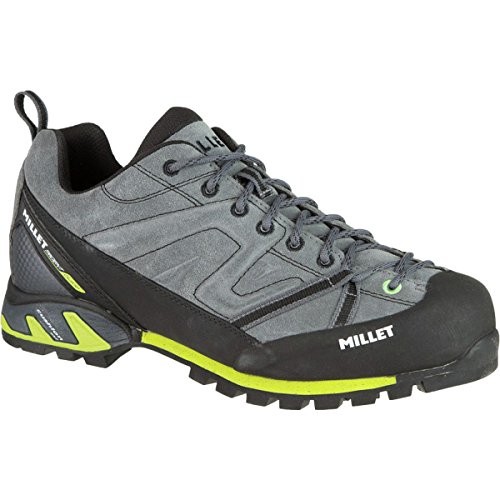 Studio : Millet Publisher : Millet Binding : Apparel Product Description The road less traveled (the kind you prefer) is rocky and rises and falls with twists and turns. Millet prepares you for it in the incredibly lightweight, precise Men's Trident Guide Approach Shoe. The rugged but stylishly modern split leather has a water-resistant coating, and is reinforced by a rubber toe cap and side rands; the carbon synthetic reinforcements on the upper add abrasion-resistance. Climbing-style extended lacing lets you dial in a precise fit so you're not slopping around in the shoe on uneven terrain. The Trident's Heel Frame Trident heel stabilizes your foot and absorbs shock, and the heel counter provides support as you billy-goat up uneven trails. Impacts are further softened by the EVA midsole, and the dual-material insole that also features a Hygiene antibacterial treatment to keep the shoe fresh. The high-traction Vibram outsole has Climbing Zone grippers to keep you on your feet when the trail takes a steep and rocky turn. This shoe has an anatomic shape for comfort. And an unrestrained flex means you can move up the trails fast in this sensitive shoe. 0
