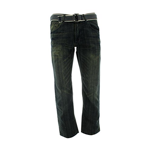 -. Title : Fusai - Men's Belted Denim Embroidery Pocket Jeans - Vintage