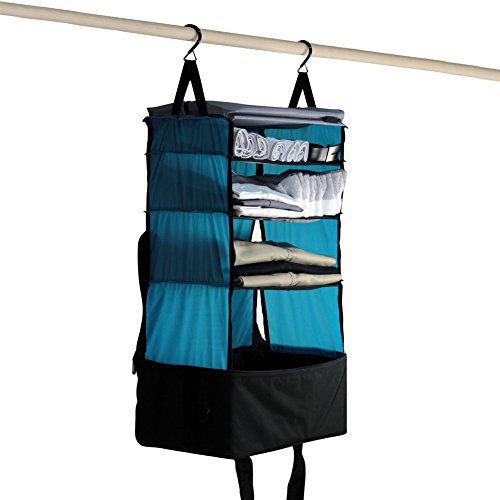 -. Feature : Has compartments for clothes, underwear, shoes, and dirty clothes / Can be hung in closet rods or shower curtain rods to prevent contact with floor / Has dual front pockets for travel documents / Has bottom compartment for separating dirty/used clothes / Has soft, durable, and rubberized polyester that keeps the contents dry