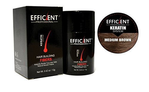 -. Binding : Misc. -. Brand : EFFICIENT -. Color : Medium Brown -. EAN : 0753677616684 -. Feature : EFFICIENT Brand Keratin Hair Building Fibers Net Wt. 12g / 0.42oz / Make your hair look fuller and thicker just in seconds! / Immediately eradicates physical appearance of thinning hair and bald spots. / Made from pure organic and natural protein, the exact same protein your organic hair is made from. / Works perfectly for both men and women, has no side effects. -. MPN : 7.53678E+11 -. PackageQuantity : 1 -. PartNumber : 7.53678E+11 -. ProductGroup : Beauty -. ProductTypeName : BEAUTY -. Title : EFFICIENT Keratin Hair Building Fibers, Hair Loss Concealer Net Wt. 12gm / 0.42 oz (Medium Brown) -. UPC : 753677616684