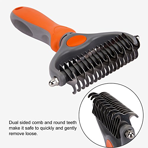 You'll get 2-in-1 grooming tool - Dual-sided comb has 9 teeth side for tough mats and tangles and 17 teeth side for thinning and de-shedding.