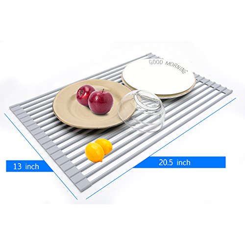 Albessel Roll-Up Dish Drainer Rack, Ware Drying Rack, For Washing Fruits and Vegetables(Gray)