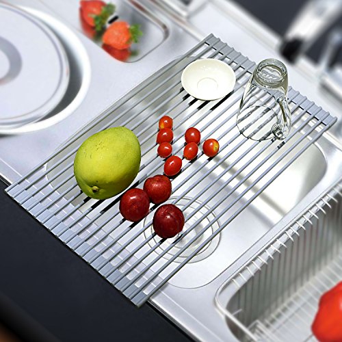 Excellent space-saver multi-purpose heavy-duty roll-up dish drainer rack, keep your counters and cutting board clear of clutter.