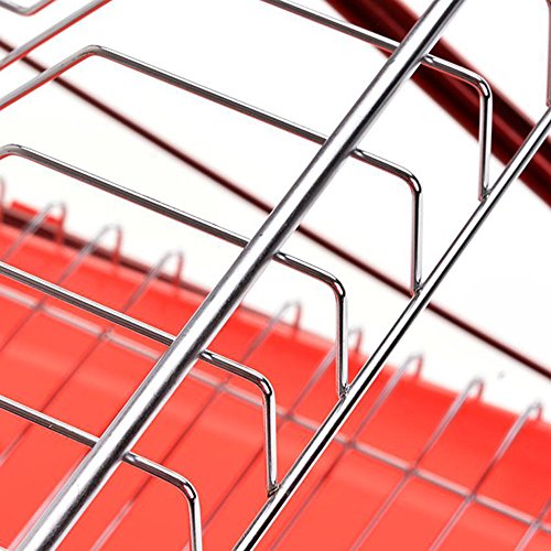 Stainless Steel Dish Drying Rack with Drain Board 2-tier Dish Drainer Rack Red