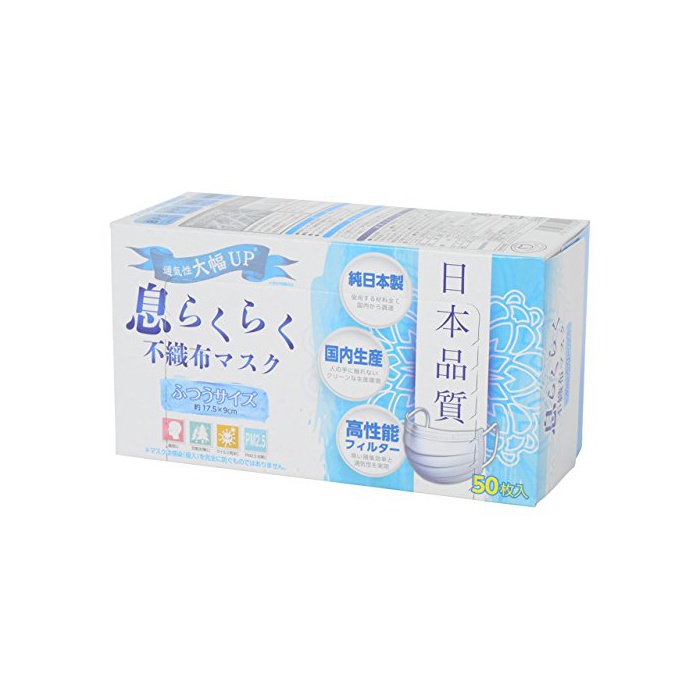 원본상품명: アズフィット 日本品質 息らくらく 不織布マスク ふつうサイズ 50枚入