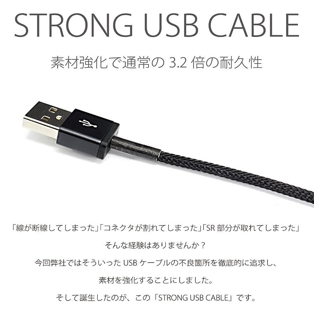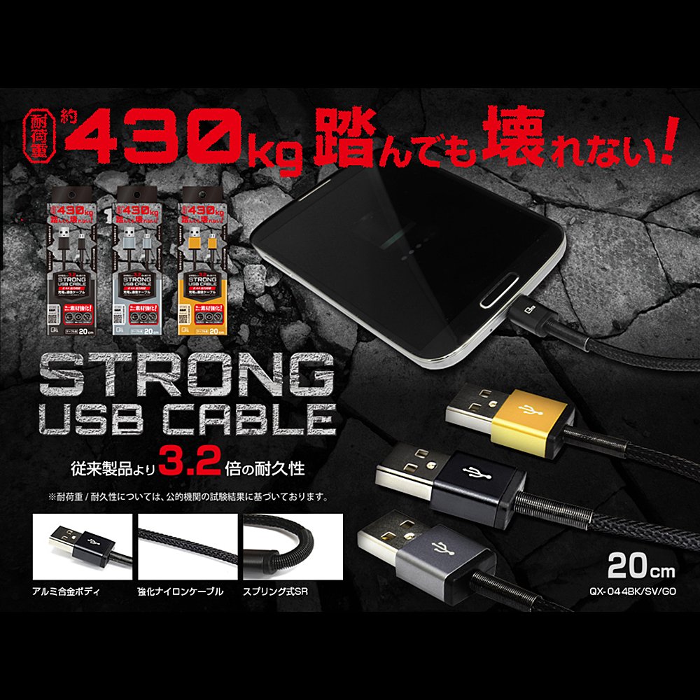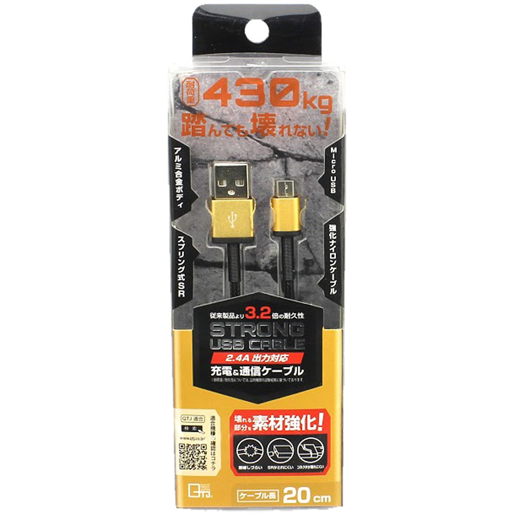 Quality Trust Japan MicroUSB connector mounted Strong USB cable (20cm) QX-044BK