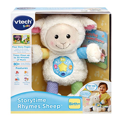 -. Binding : Toy -. Brand : VTech -. EAN : 3417765067006 -. Feature : Soothing & playtime modes contain a total of 4 sung songs, 4 stories and 40 45+ melodies / Parent-friendly features include a parent control panel; a timer switch can be set in either the soothing mode or playtime mode for normal, 15 or 30 minutes / A cute and colorful nursery rhymes board book is included so your child can follow-along with the stories / Light-up Star flashes to the rhythm of the music. -. IsAdultProduct : 0 -. Label : V Tech -. Manufacturer : V Tech -. Model : 80-506700 -. MPN : 80-506700 -. NumberOfItems : 2 -. PackageQuantity : 1 -. PartNumber : 80-506700 -. ProductGroup : Toy -. ProductTypeName : TOYS_AND_GAMES -. Publisher : V Tech -. Studio : V Tech -. Title : VTech Storytime Rhymes Sheep -. Warranty : No Warranty