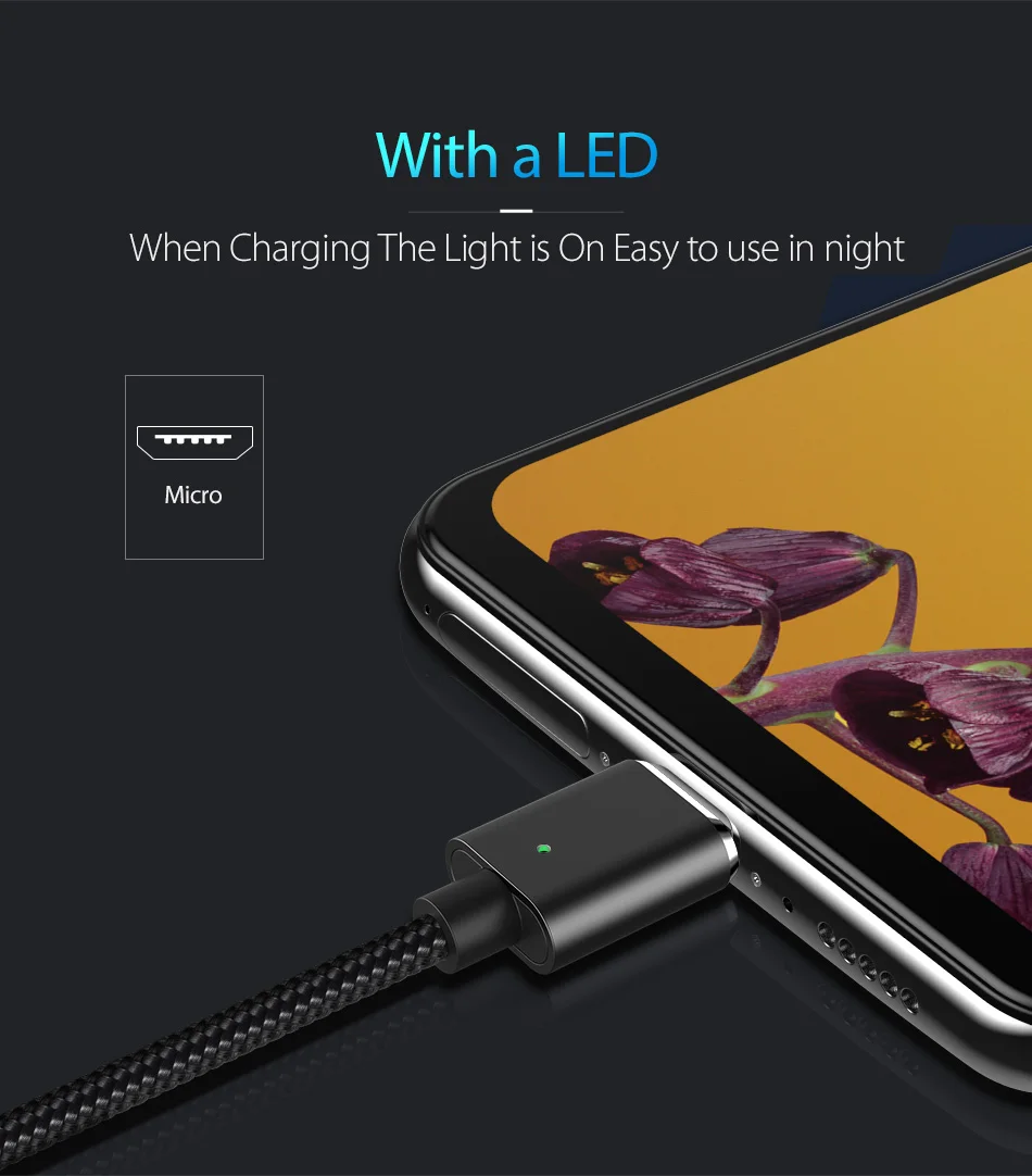 Length:1m magnetic cable micro usb