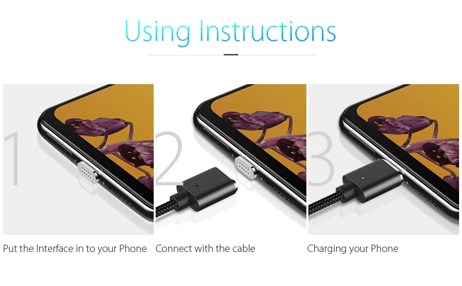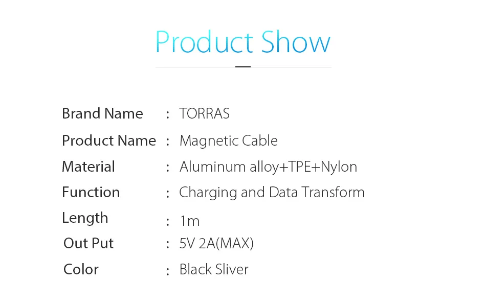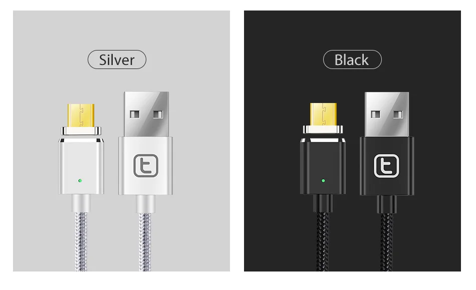 Color:Black Sliver magnetic cable micro usb