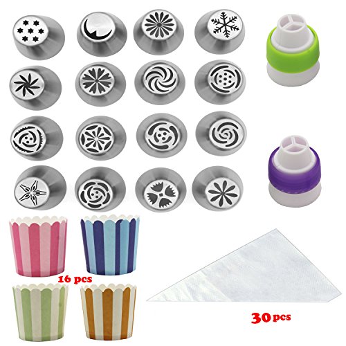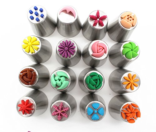 - Cake Decorating Supplies-Make 16 New Russian Frosting Icing Flowers In Seconds by using Russian Piping Tips, Great decoration for cup cake cookies icecream and kitchen baking.