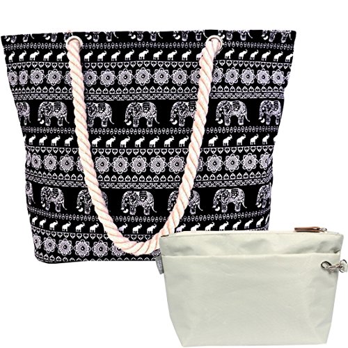 -. Brand : kilofly -. ClothingSize : One Size -. Color : black -. Department : womens -. EAN : 0700580710282 -. Feature : Zipper Closure - Keeps all your belongings secured and gives you a peace of mind / Great Value - Comes with a medium sized pouch with two zipper compartments / 2 Zipper Compartments Pouch - Perfect for storing your phone, wallet, make up essentials and other valuables / Bohemian style - With its attractive rope handles, elephant print and Thai pattern look / Bag size: 43 x 33 x 14 cm / 17 x 13 x 5.5 in (L x W x H); Pouch size: 21 x 13 x 5 cm / 8.3 x 5.1 x 2 in -. Model : AWP512 -. MPN : AWP512 -. PartNumber : AWP512 -. ProductGroup : Apparel -. ProductTypeName : LAGE -. Size : One Size -. Title : kilofly Thai Canvas Rope Handle Beach Bag Travel Shopping Shoulder Tote + Pouch -. UPC : 700580710282