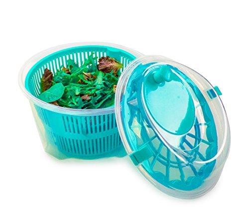 Manual 5 Quart Salad Spinner and Keeper for Drying Lettuce & Vegetables, BPA-Free Dishwasher Safe (Blue)