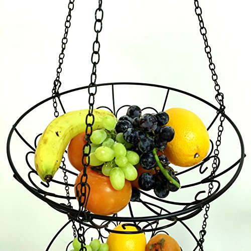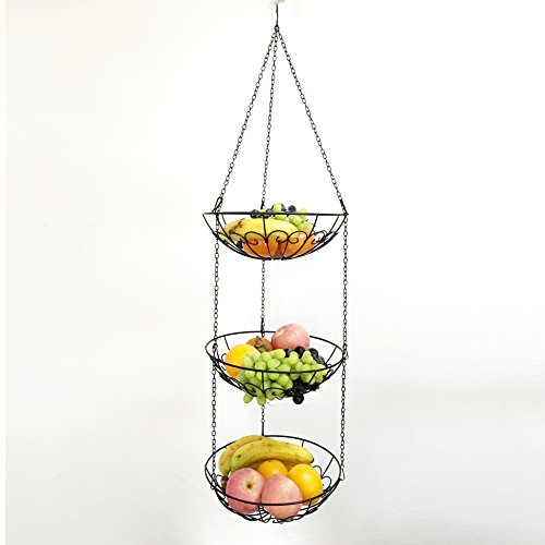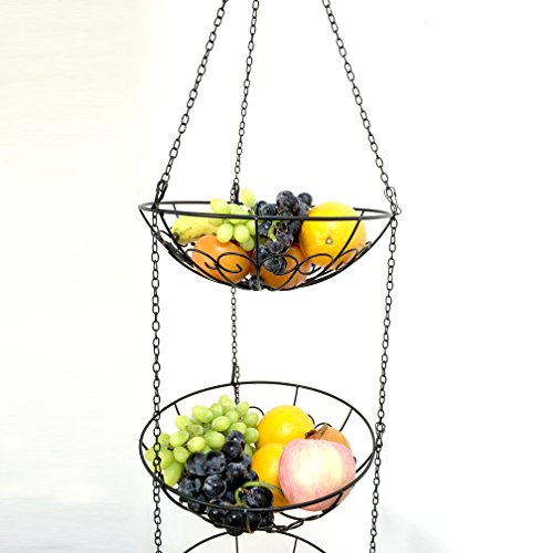 Features: 1 This pretty yet practical 3 tiered hanging basket is ideal for the kitchen, bath, laundry. 2 Beautiful and elegant design combined with heavy duty material for a beautiful look and lasting product 3 Clearly display the fruit in the basket 4 You can put the basket in the bathroom, put towels, toilet paper, mobile phones properly.