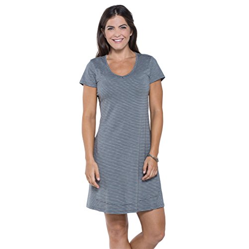 The Marley SS Dress is a graceful t-shirtdress that instinctively follows your lead. It's made with Toad&Co's Samba knit fabric, a collaboration of silky Tencel, soft organic cotton, and stretchy spandex, which hugs you gently for a subtle fit. Add to that a flattering V-neckline, A-line silhouette and you've got yourself a classic that goes anywhere. Wear it with the double-wrap self-belt provided, or without to let the shift shape shine. If you prefer a slimmer fit, we recommend ordering one size smaller than you normally wear.Feature