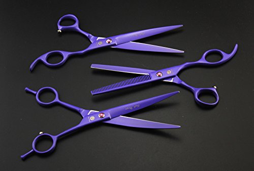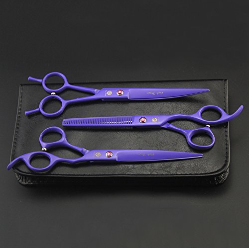 ()/Pet Supplies/Grooming/DIRECT FROM USA/Purple Dragon 7.0 inch 4PCS Violet Pet Grooming Scissors Dog Thick Hair Cutting Thinning Shea...