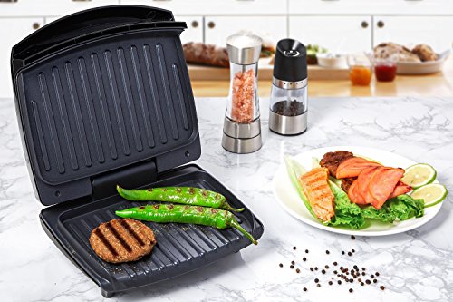 Anti-Stick Durable Coating Smokeless Panini Press Grill with Indicator Lights - The non-stick coating plates provide even grilling and toasting and are designed for prolonged use. This press grill is smokeless and will be perfect for indoor cooking. The indicator lights are also pretty convenient, which let you know when is ready to cook.