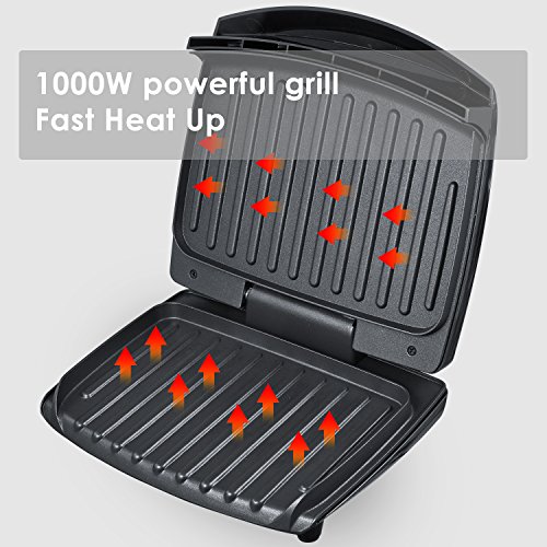 Fairly Fast Cooking Evenly Indoor Grill - The 1000W electric indoor grill heats up quickly to cook meat like chicken breasts or steaks in 6-8 minutes and allows them to retain flavor and keep juicy. This non-removable plate promises the heat is evenly distributed over the entire plate in a much higher heat level than the removable ones.