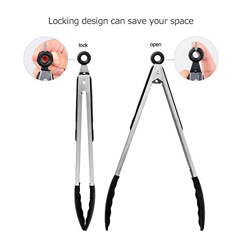 Material:food grade silicone and stainless steel. Tong's Length:7 inch,9 inch,12 inch. Heat Resistance:up to 480 ℉ or 240 ℃. Note:do not touch the fire directly Package
