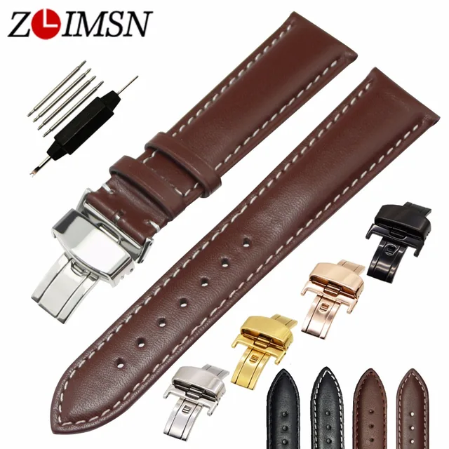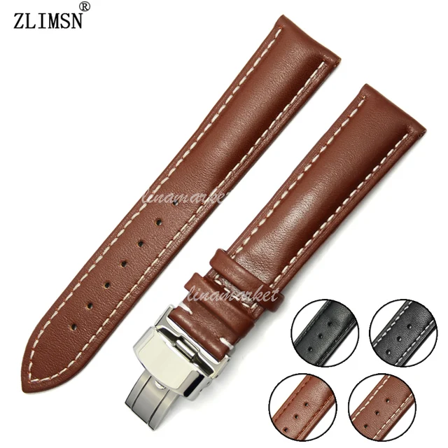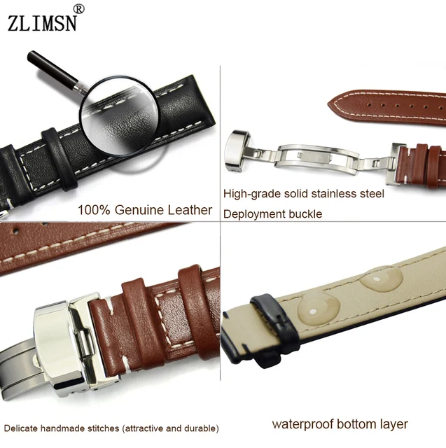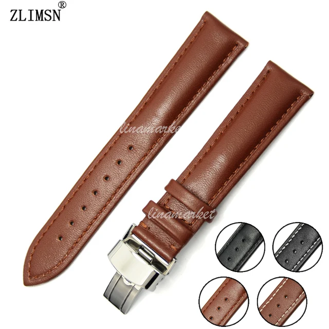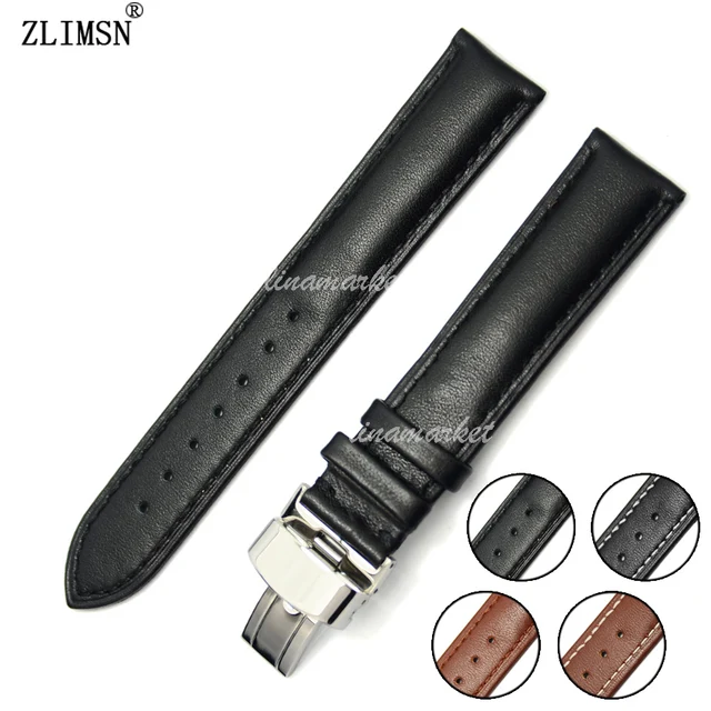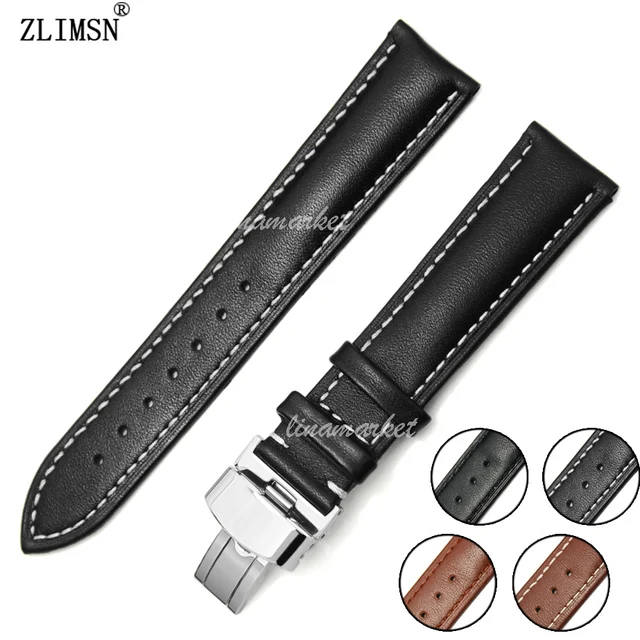 | [해외]ZLIMSN 정품 가죽 손목 실버 나비 배포 버클 블랙 브라운 시계 스트랩 18 20 22 24 미리메터 액세서리 시계 |