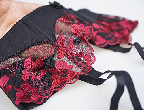 Women's Sexy Wine Red Embroidery Flower Garter Belts for Stockings Metal Clips