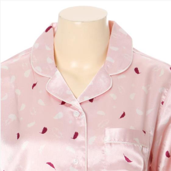 화사한 밝은 톤 컬러감의 깃털 나염이 고급스럽게 들어가있는 여성 잠옷입니다.폴리 사틴 소재로 광택이 우수하고 터치감이 좋습니다.우아한 광택과 실루엣이 장점인 제품으로 웨딩 시즌과 중장년층에 인기가 좋습니다.커플 세트 남성 잠옷 MP8564A 별도 구매 가능 합니다.