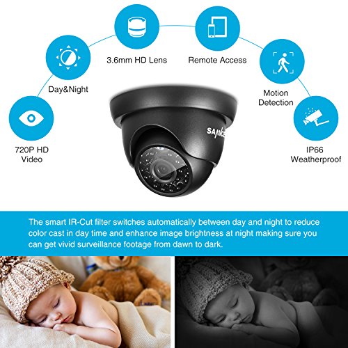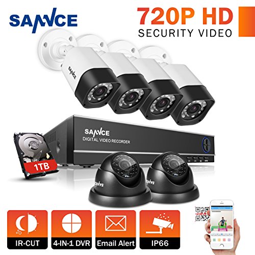 SANNCE 8CH 1080N Security Camera System CCTV DVR with 1TB Hard Drive and (6) 720P Night Vision Surveillance Cameras, IP66 Weatherproof