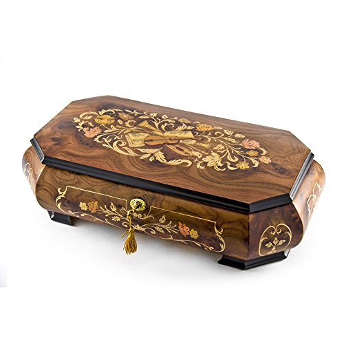 -. Title : Handcrafted 18 Note Wood Tone Grand Double Level Music Theme Musical Jewelry Box