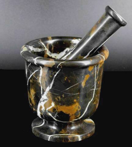 -. Feature : Decorative Black and Brown Marble Mortar and Pestle Set - Large, 5 x 5 Inch Tall / Beautifully Handcrafted from High Quality Genuine Michelangelo Marble - Each Unique Marble Mortar and Pestle Set Blends Shades of Black, Brown and Copper Tones with Natural White Crystal Marble Veining / Thick Marble Mortar Bowl with Solid Marble Pestle for Crushing Herbs and Nuts, Grinding Spices, Blending or Mixing Ingredients - Fully Polished - Marble Mortar Bowl, 5 Inch Dia. x 5 Inch Tall / Marble Pestle, 1 3/4 Inch Dia. x 6 Inch Long / Impressive Natural Stone Mortar and Pestle Set for the Kitchen Counter, Decorative Michelangelo Marble Kitchen Accessory, and Unique Marble Gift Set for Holidays or any Special Occasion / Our Marble, Onyx, Stone Mortar and Pestles Available in Several Sizes. Khan Imports Offers Quality Onyx Gifts, Unique Marble and Stone Home Decor.