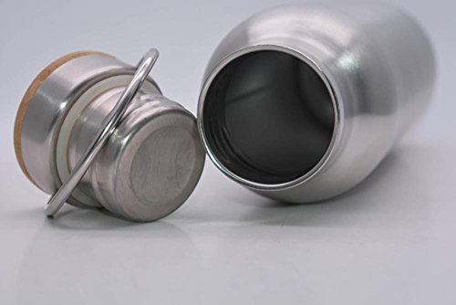 Stainless Steel Water Bottle Classic Single Wall w/ Stainless Unibody Leak Proof Bamboo Loop Cap with Vacuum Seal, Lead Free, 25 ounces Best Simple Water Bottle Out There