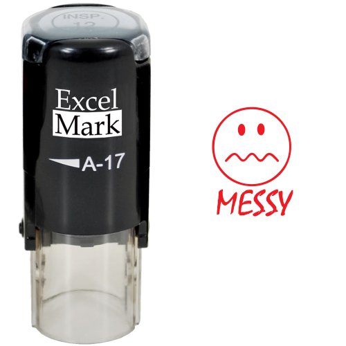 -. Binding : Office Product -. Brand : ExcelMark -. Feature : Self-Inking Stamp in RED ink / Clear base to easily align impressions / Features a two-sided ink pad that doubles the number of impressions and the useful life of the pad / Thousands of impressions before re-inking is necessary / Impression Area: 5/8" diameter -. Label : Discount Rubber Stamps -. Manufacturer : Discount Rubber Stamps -. Model : A17 -. MPN : A17-TCH24 -. PackageQuantity : 1 -. PartNumber : A17-TCH24 -. ProductGroup : Office Product -. ProductTypeName : OFFICE_PRODUCTS -. Publisher : Discount Rubber Stamps -. Studio : Discount Rubber Stamps -. Title : Round Teacher Stamp - MESSY - RED INK