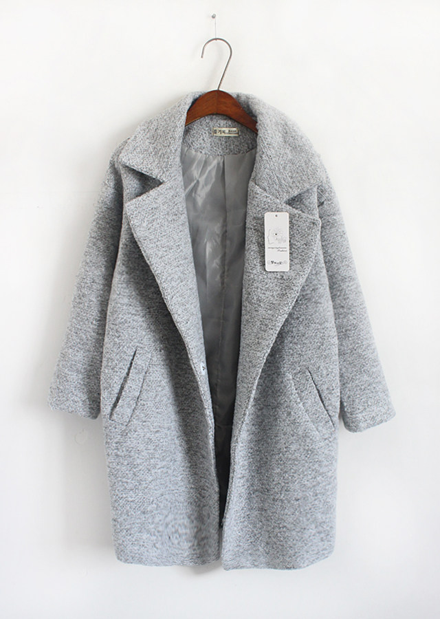 2016秋冬新款韩版宽松气质大翻领中长款灰色毛呢外套女潮 - 商品详情 - 搜款网 - 真实档口一手货源