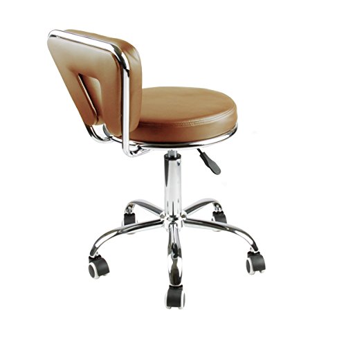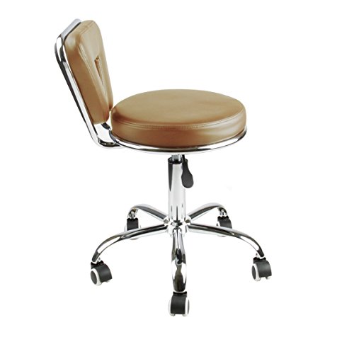 - Title : Apontus PU Leather Salon Stool with Back Cushion, Light Brown