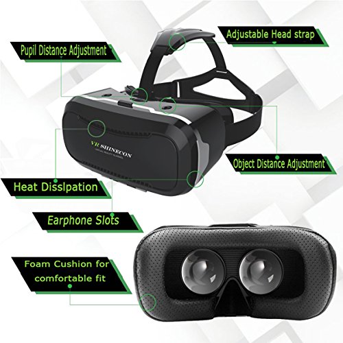 -. Binding : Wireless Phone Accessory -. Feature : Ideal Heat Dissipating Design - Front cover is adsorbed by magnet, super face foam protector, ideal heat dissipating design, makes the phone radiate faster than others and makes the phone cool while using, and great for ventilation for long use, also adjustable phone mount can hold your phone in place, you can charge and use earphone at the same time through the ventilation holes on both sides / Ergonomically Adjustable T-shaped Straps - Three Adjustable straps for flexible wear to fit different group of people, high grade perforated leather material suitable nose bridge and face foam protector, bring you ultra comfortable feeling. Its design can also help decrease the pressure on around your eyes when enjoy the movie or game, offers you super 3D picture effect and ultra wonderful feeling / High-definition Optical Resin Lenses - Use Japanese imported PMMA lens and 45mm diameter spherical resin lens material without stimulation plastic sheet, environmental, high quality, lowering down the distortion to the minimum when magnifying the images and providing wider view, you will not feel visual fatigue and dizzy even you use it for a long time because of the resin lens / 360 Degree Panoramic Roaming & 120 Degree Field of View - Flying cross the Galatics, running with Africa antelopes, shaking hands with penguins in Antarctic, just do it at anywhere anytime. Tested thousands of times, 120 degree field of view in the VR Shinecon 2.0 avoids low pixel, which takes you into the picture, brings you a wonderful view experience / Bluetooth Remote Controller- Lightweight & Ergonomically Design. Support 360 Degree Movement Location. Compatible with iOS & Android System & PC, can be used as a game controller, self-timer shutter, music controller, wireless mouse, E-book flip page, PPT presentation etc and can be used for mobile phone, MID, TV box, smart TV, and so on. -. Label : CEStore -. Manufacturer : CEStore -. PackageQuantity : 1 -. ProductGroup : Wireless -. ProductTypeName : WIRELESS_ACCESSORY -. Publisher : CEStore -. Studio : CEStore -. Title : 3D Glasses Headset+ Remote Controller, CEStore® Adjustable T-shaped Straps Adsorb-able Radiator Panel Virtual Reality Glasses Headset 3D Video Movie Game Box for All Smartphone 4.0 -6.0inch