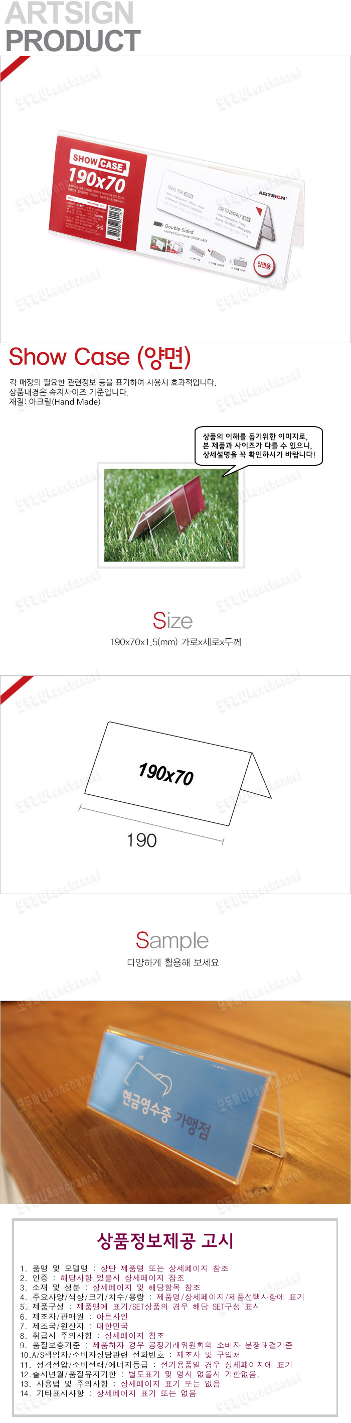 - 품명 및 모델명쇼케이스 단면(190x70mm)