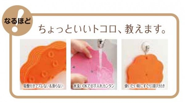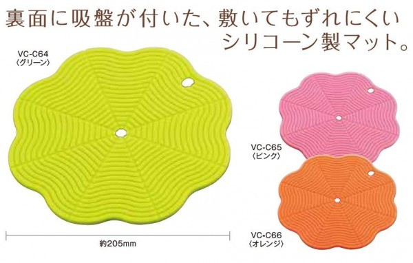 裏面に吸盤が付いた、敷いてもずれにくいシリコーン製マット。