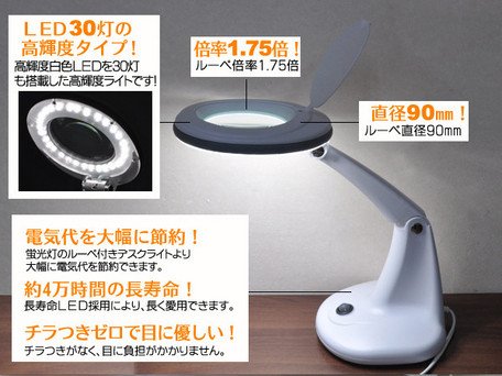 원본상품명: 【LEDライト】ネイルアトや工作に! 30LEDルペ付きスタンドデスクライト 1.75倍 16点