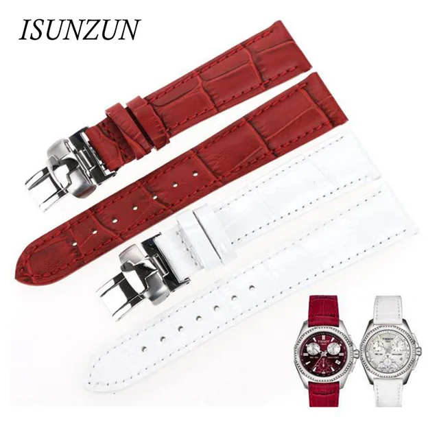 | [해외]Isunzun 여성의 시계 스트랩 tissot prc100/t22/t008 줄 스타일 14 미리메터 와인 redleather 시계 밴드 무료 배송 |
