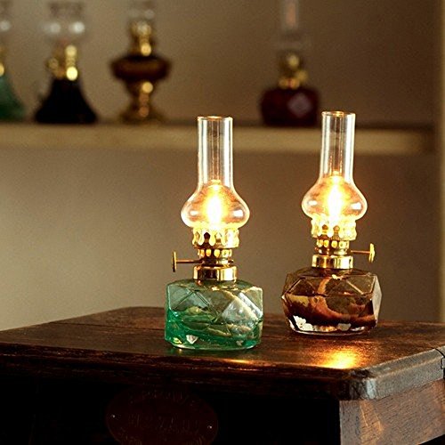 유리 보틀에 컷 마무리를 한 세련된 앤틱 오일 램프.