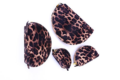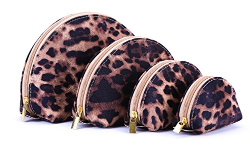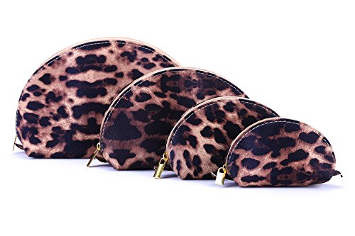 HOYOFO Portable Set of 4 Different Sizes Makeup Pouch Bags Shell Cosmetic Purses Handbag Clutch Bag Coin Purse for Women,Leopard Yellow