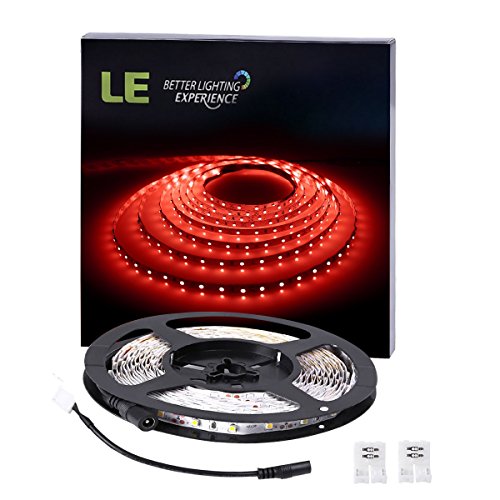 LE 16.4ft Flexible LED Light Strip, 300 Units SMD 2835 LED, Red, Non-waterproof, 12V, LED Tape, LED Ribbon, DIY Indoor Party Christmas Holiday Celebration Home Kitchen Car Bar Decoration