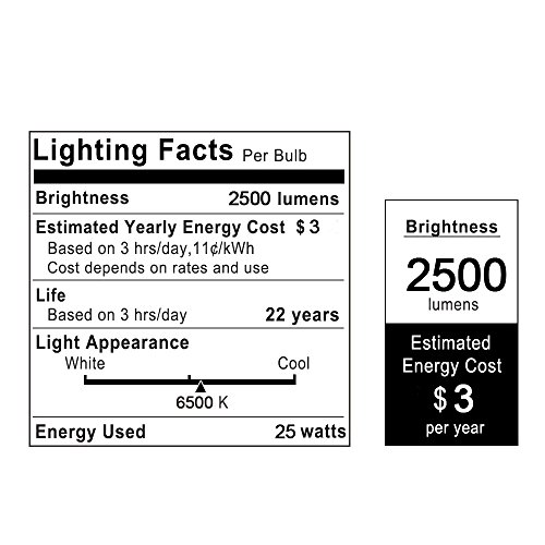 - 【Super Bright】 - 360 Degrees Shining 2500Lm 6500K Cool White E26 socket, 25W LED equal 200W incandescent bulb