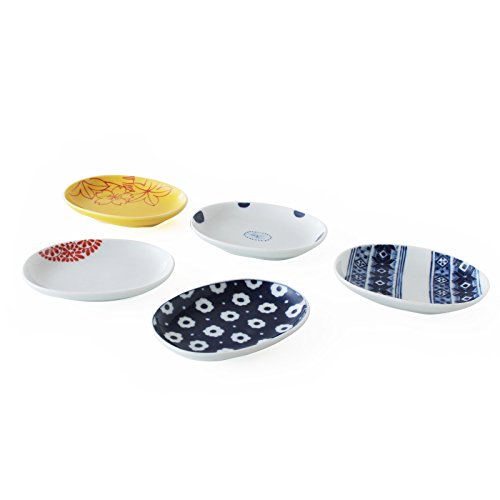 원본상품명: 波佐見? 小皿 / 楕円 豆皿 ??わり 5柄組 約W 10cm xD 8cm xH 1.7cm